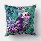 Whimsical Abstract Bird Floral Teal Purple Throw Pillow