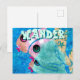 Whimsical Abstract Fish Trio Blue Personalized Postcard