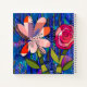 A fun abstract designed background with 2 whimsical flowers, in bright, bold colors. You can customize the message and the color label under the message.