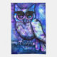 Whimsical Abstract Owl Big-Eyed Blue Purple Kitchen Towel
