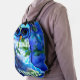 Whimsical Abstract Owl Blue Green Personalized Drawstring Bag