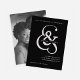 This unique and modern dark wedding save the date card features a bold, flowy very light gray ampersand on a black background, with a simple and creative text layout that is sure to stand out. Add your favorite personal photo to the back.