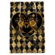 A whimsical and romantic goth design to turn an ordinary pillow into a Valentine featuring an elegant heart with golden roses on a dramatic black and gold harlequin pattern background.