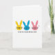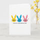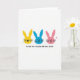 This design shows three long-eared animal characters centered on a bright white background, arranged side by side like close friends leaning in for a photo 🐰. The left character is golden yellow with a small star mark near one ear, giving it a quietly special look. The middle character is soft blue, facing forward with tiny dot eyes and a small curved smile that feels calm and steady. The right character is rosy pink with two blush-like marks near its ear, adding a shy, affectionate touch 🐇. Each face is kept simple with dot eyes, a curved smile, and short whisker lines, and the wide white space around them keeps the scene airy. Below the trio, a short holiday greeting sits centered in a neat, easy-to-read line, printed in a dark tone that stands out against the white. The three figures use solid yellow, blue, and pink shapes with long upright ears, small whiskers, and minimal facial lines.