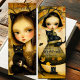 Whimsical Artistic Black Cat and Girl Bookmarks