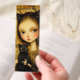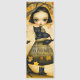 Bookmark featuring whimsical paintings of a girl with a black cat in a retro somewhat moody style.