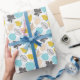 Whimsical Autumn Leaves Pattern | Blue and Yellow Wrapping Paper