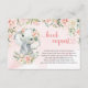 Popular baby elephant jungle animals blush pink flowers and gold sparkles girl baby shower Book request enclosure card,