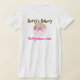 Fun whimsical t-shirt done in tan, white, and pink polka dots and stripes. A sweet pink bow and cute clip artwork of cup cakes decorate the front and back of this great tee. Perfect for a bakery shop, party shop, or an independent custom baker. Customize the text fields to personalize for yourself or your shop.