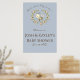 Whimsical baby shower welcome poster sign can be used for co-ed or single honoree, features cute bee and flower wreath with customizable text on pale blue background.