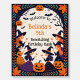 Celebrate in spooky-chic style with this enchanting foam board, framed by a vibrant border of autumn leaves, vines, and smiling jack-o'-lanterns. A charming cast of animated witches, big and small, are ready to party under a starry night sky with fluttering bats. This whimsical design is perfect for creating a bewitching atmosphere.