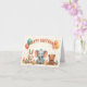 A heartwarming birthday scene where a bunny, elephant, and bear sit together among balloons and cupcakes, celebrating with joy and innocence. A poetic moment of childhood magic, friendship, and festive cheer captured in gentle pastel tones.