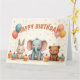 A heartwarming birthday scene where a bunny, elephant, and bear sit together among balloons and cupcakes, celebrating with joy and innocence. A poetic moment of childhood magic, friendship, and festive cheer captured in gentle pastel tones.