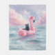 Whimsical Black Cat Flamingo Float Blanket