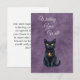 black cat wedding enclosure card, purple gothic insert card details, whimsical feline wedding stationery dark, moody purple floral cat invite, halloween wedding detail card black, gothic stationery wedding cat purple, elegant macabre cat wedding insert, deep purple floral feline card, mysterious black cat wedding accents, dark aesthetic wedding guest information card