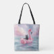 Carry seaside charm wherever you go with this whimsical watercolor tote featuring a black cat lounging in a pink flamingo float under a pastel summer sky. Soft pink and blue tones and playful ocean details make this tote both stylish and lighthearted.