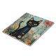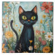 Whimsical Black Cat with Wildflowers Illustration Ceramic Tile