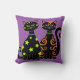 These whimsical black cats will have you purring with delight! Decorated in bright green stars and orange swirls on a purple swirls background, they make a perfect addition to your Halloween decor.