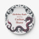 Whimsical Black Red Dragon Damask Sweet 16 Bash Paper Plates