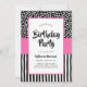 Whimsical Black White and Pink Birthday Invitation