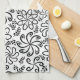 Whimsical Black White Spiral Floral Leaf Pattern Towel