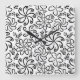 Whimsical Black White Spiral Floral Leafs Pattern Square Wall Clock