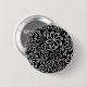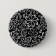 Whimsical Black White Spiral Flower Leafs Pattern Button