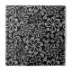 Whimsical Black White Spiral Flower Leafs Pattern Tile