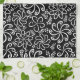 This unique pattern features stylized spiral flowers and simple leaf accents. The dense white design sits on a clean black background, creating a whimsical and graphic look. This pattern is modern, fun, and eye-catching, with a cool, flowing style.