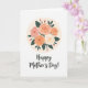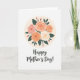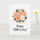 This card features a centered bouquet of full, layered flowers nestled inside a soft cream circle, like a gentle embrace ❤️. The petals shift in a light gradient from blush pink to apricot orange and creamy white, with fine curved lines that give each bloom a tender, close-knit look. Deep emerald-green leaves weave between the blossoms, creating contrast that feels calm and affectionate. A few small pink buds peek out around the arrangement, adding a sweet, growing-together touch 🌼. Beneath the flowers, the words “Happy Mother’s Day!” sit in the lower area, written in a flowing, handwritten-style font. The lettering appears in a dark tone that stands out clearly against the bright white background, leaving plenty of open space around it. The overall layout is airy and balanced, with the floral circle centered above the message and the greenery framing the blooms. The cream circle softly fades at the edges behind the bouquet, while the white background stays plain and uncluttered.