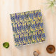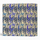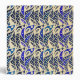 Stylized and whimsical hand-drawn peacock feather pattern in blues and gold.