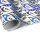 Whimsical blue and gold peacock feather pattern wrapping paper