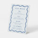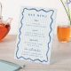 Whimsical Blue, bar menu list pedestal sign. Features, light blue and white stripe pattern background, hand drawn wavy line border with matching blue typography. Fonts and element colors can be customized.
