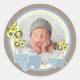 Whimsical Blue Elephants Family Baby Boy Photo Classic Round Sticker