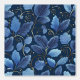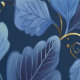 A Dark Whimsical Blue Fantasy Of Dark and Lite Blue Garden Leaves With Gold Vines