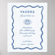 Whimsical Blue Hand Drawn, wedding favors poster. Features, light blue stripe pattern background and French Royal blue coordinating text and elements. Fonts and illustration colors can be customized.
