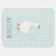 This cute and whimsical baby blanket features a farm goose illustration with a blue gingham background. The blanket has space for you to add your boys name in a clear and simple font.