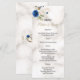 Whimsical Blue Gold Flowers Monogram Wedding Menu