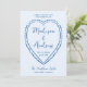 Set the tone for your celebration with this blue heart wedding invitation, featuring handwritten blue script and a hand-drawn heart on a soft light blue background. The blue color palette creates a fresh, calm look that feels both romantic and modern, while the simple style keeps the design clean and timeless. The couple’s names are displayed at the center of the heart in a handwritten script, with the wedding details arranged below for a balanced and polished layout. Suitable for year-round weddings, this invitation can be personalized with your names, wedding date, and venue to create meaningful wedding stationery that feels charming, personal, and beautifully designed.