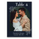 blue navy wedding table number cards with white modern lettering and "table" in modern calligraphy script. The design has a blue-navy background for a unique look. The pattern is repeated on the back. Add your name, wedding date, and table number to the table card order form. Add each number to your cart separately, and then check out when you're done.