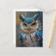 whimsical blue owl pink blue polka dot splatters postcard