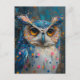 whimsical blue owl polka dot splatters postcard