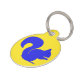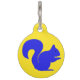 Fun bright dog tag done in sunny yellow, with a blue squirrel silhouette, on the front. The back of the tag is done in bright blue, with white custom text. Personalize the text with your dog's information. Great with our matching dog products.