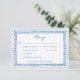 This whimsical photo wedding response card with dinner choices features a soft blue, playful scalloped rectangle frame against a classic blue and white striped background. Your first initials take center stage on the back. Perfect for a wedding with a preppy or coastal aesthetic, this charming design provides a sweet, hand-painted look for your special celebration. Created by Simply Farmhouse Press.