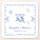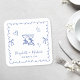 Whimsical Blue Wavy Frame Wedding Square Paper Coaster