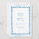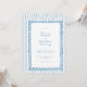 This whimsical invitation features a soft blue watercolor, playful scalloped rectangle frame against a classic blue and white striped background. Perfect for a wedding with a preppy or coastal aesthetic, this charming design provides a sweet, hand-painted look for your special celebration. Created by Simply Farmhouse Press.