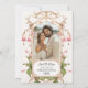 Framed with soft pink blooms and greenery, this design captures the feeling of blooming romance and joyful beginnings. It is perfect for garden weddings, whimsical themes, and modern romantics. Add a personal touch by including a treasured photo of you and your partner in the back, creating a keepsake that your guests will adore.