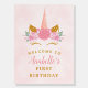 Whimsical Blush Pink Unicorn First Birthday Foam Board