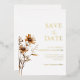Perfect for a modern wedding, this whimsical boho wildflower save the date has a vintage feel to it. wildflowers can be seen in this plant design.