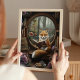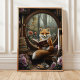 Step into an enchanting woodland library with this whimsical fox art print featuring a curious red fox reading a book by a round window overlooking a magical forest. Surrounded by vintage books, warm cookies, daisies, and a cozy fall view, this fantasy scene is perfect for book lovers, woodland nursery decor, or anyone who adores charming animal illustrations. A beautiful addition to cottagecore homes, cozy reading nooks, and whimsical art collections.